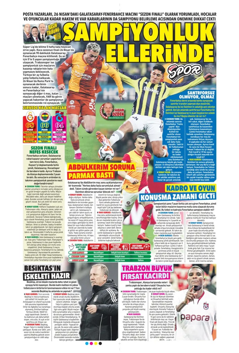 14 Nisan 2026 – Gazetelerde FENERBAHÇE