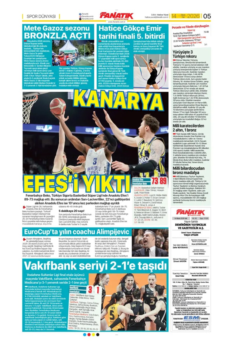 14 Nisan 2026 – Gazetelerde FENERBAHÇE
