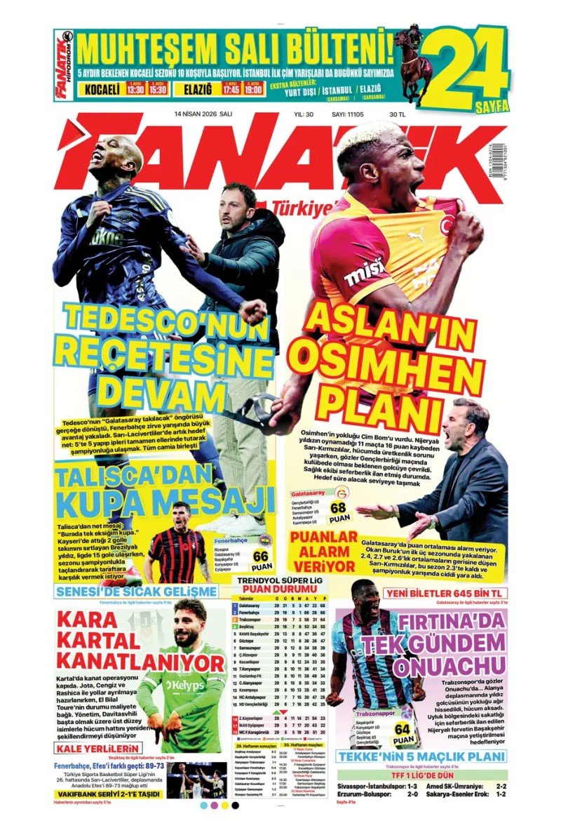 14 Nisan 2026 – Gazetelerde FENERBAHÇE