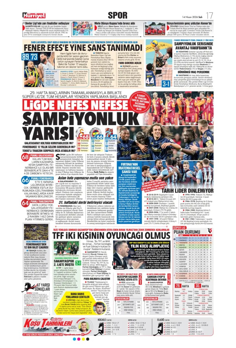 14 Nisan 2026 – Gazetelerde FENERBAHÇE