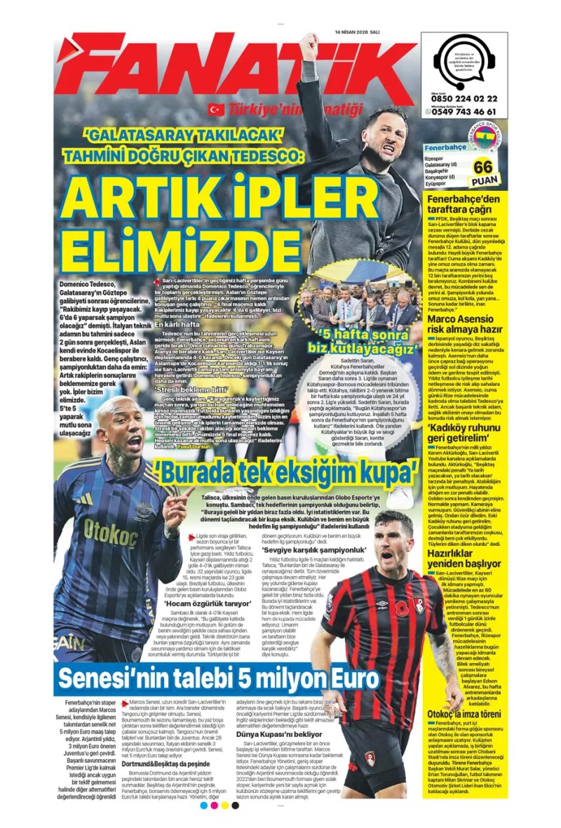 14 Nisan 2026 – Gazetelerde FENERBAHÇE