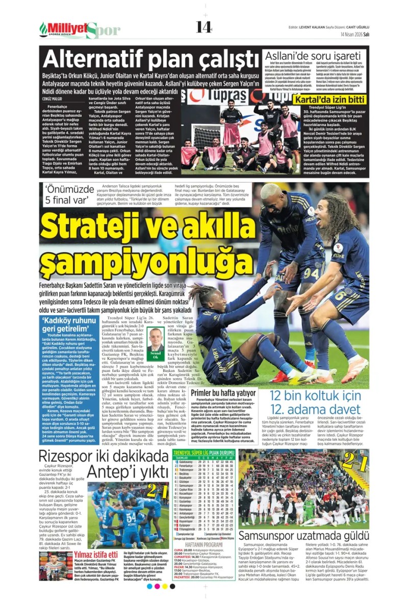 14 Nisan 2026 – Gazetelerde FENERBAHÇE