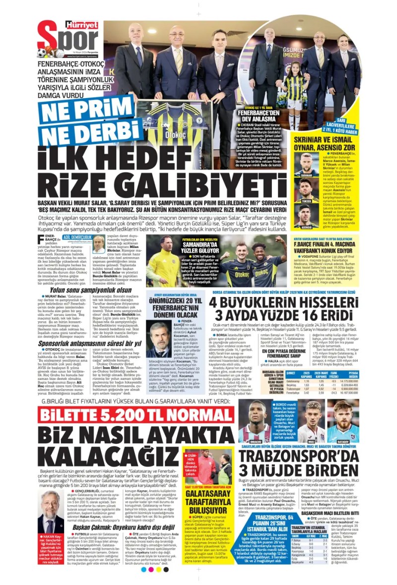 16 Nisan 2026 – Gazetelerde FENERBAHÇE