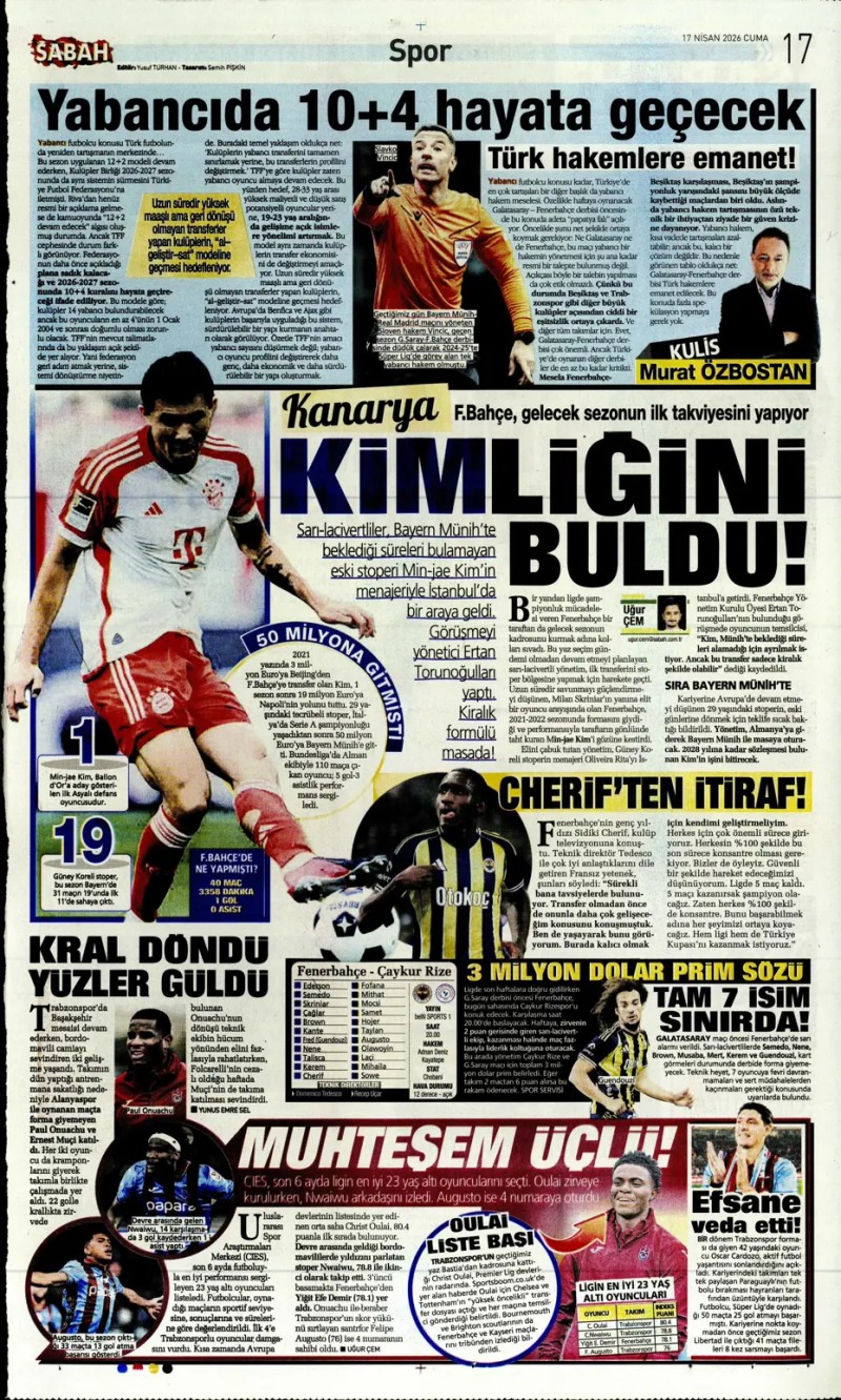 17 Nisan 2026 – Gazetelerde FENERBAHÇE