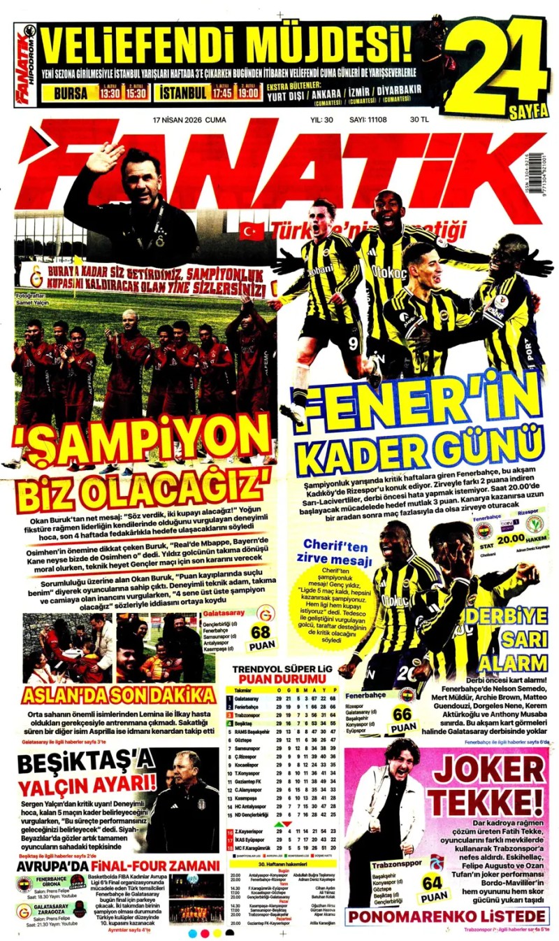 17 Nisan 2026 – Gazetelerde FENERBAHÇE