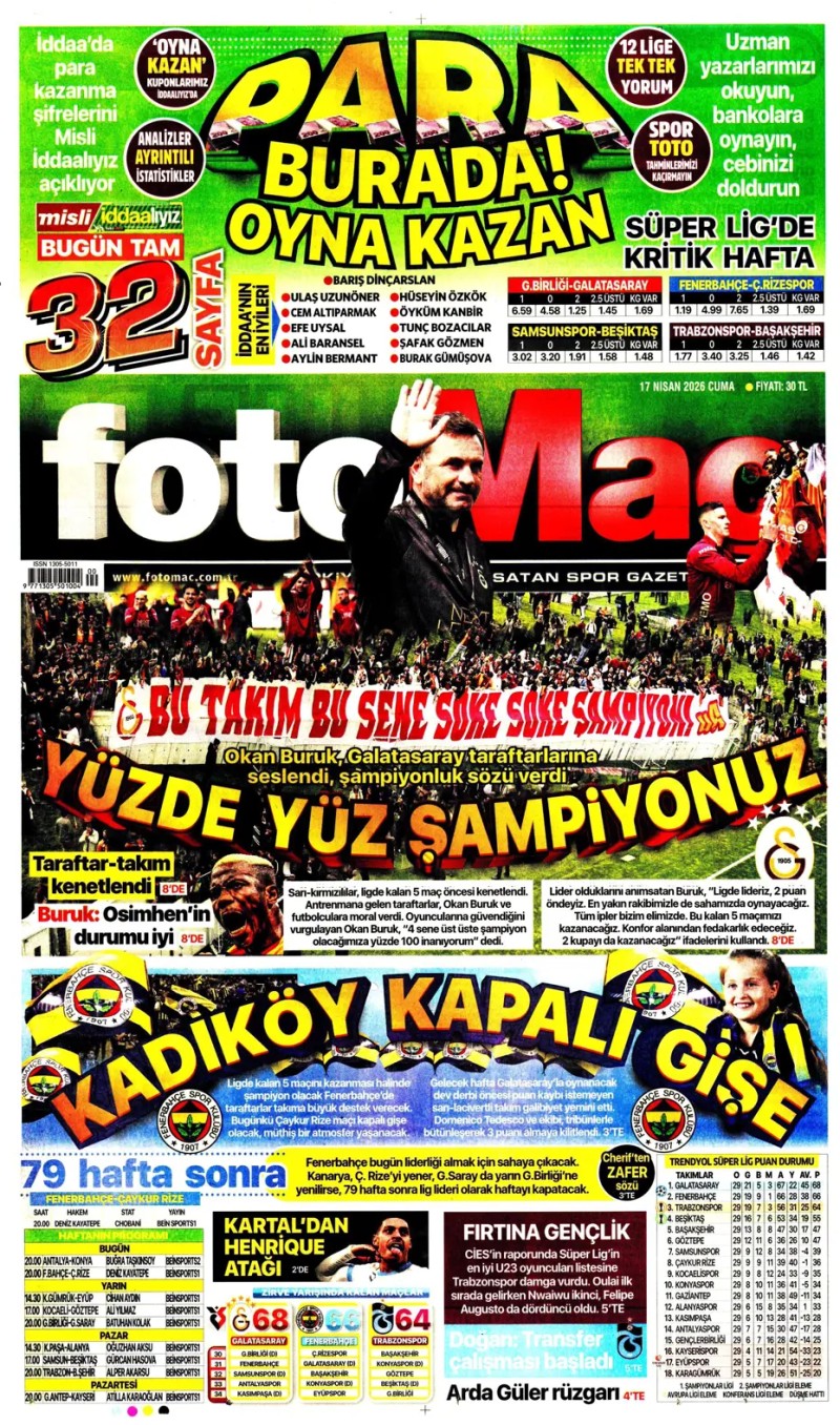 17 Nisan 2026 – Gazetelerde FENERBAHÇE