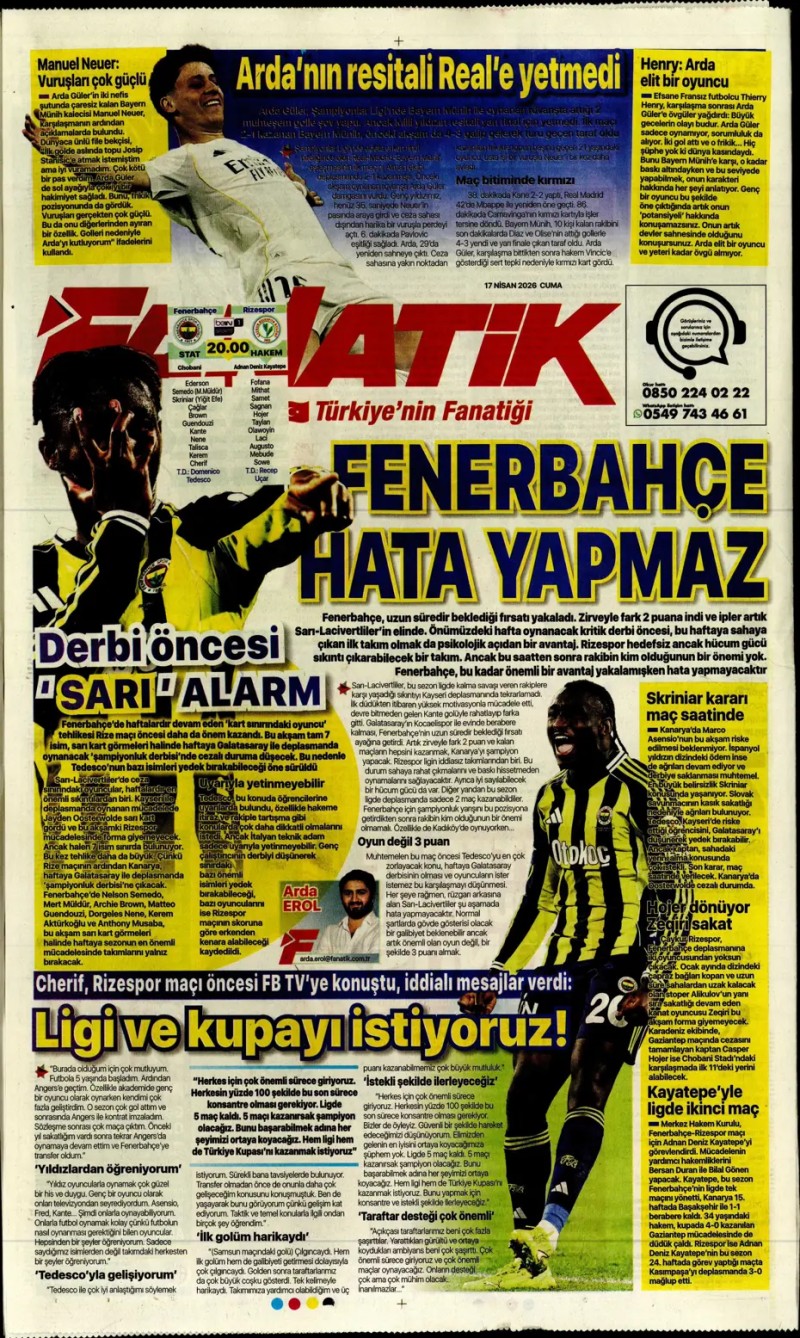 17 Nisan 2026 – Gazetelerde FENERBAHÇE