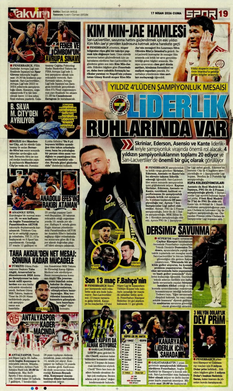 17 Nisan 2026 – Gazetelerde FENERBAHÇE