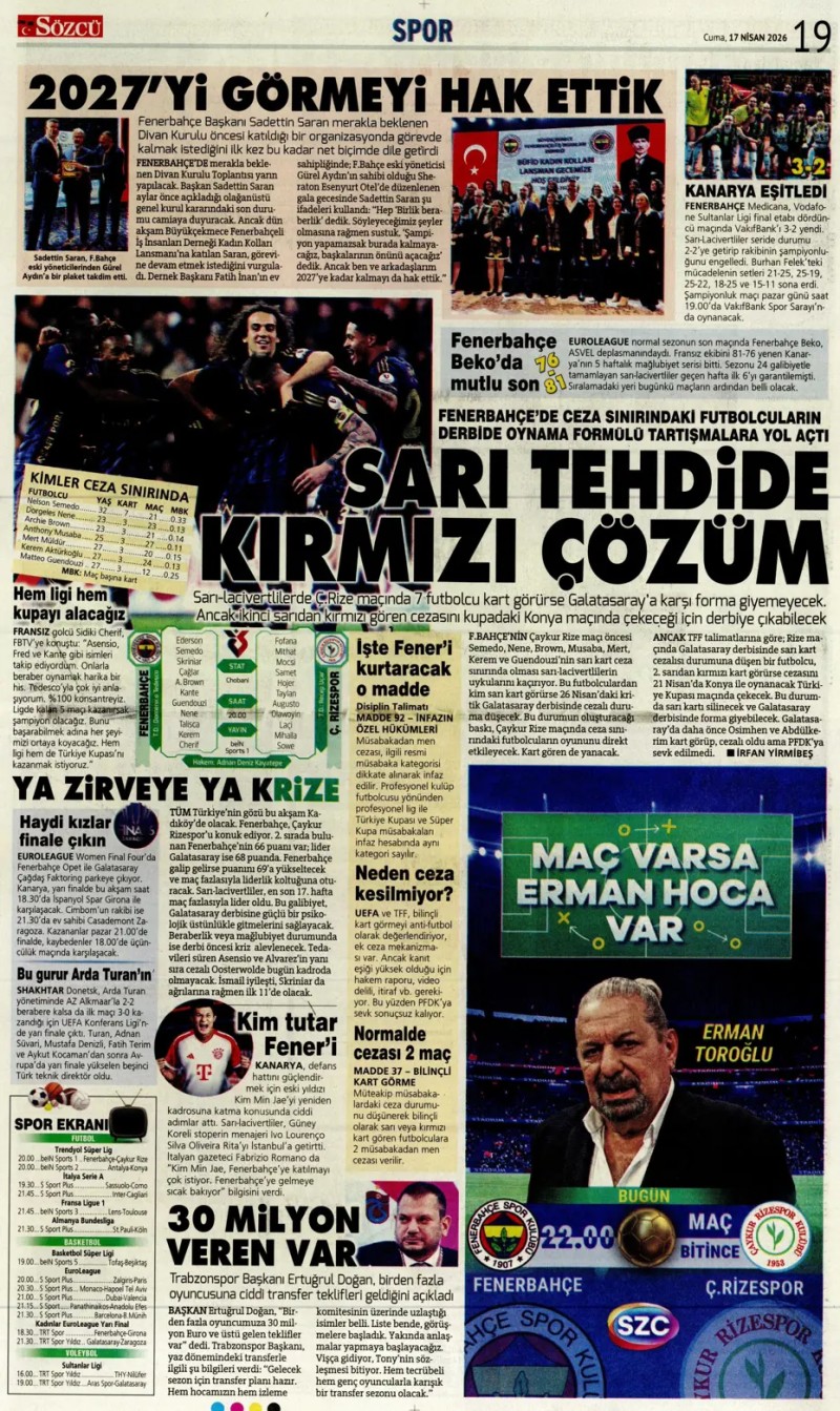 17 Nisan 2026 – Gazetelerde FENERBAHÇE