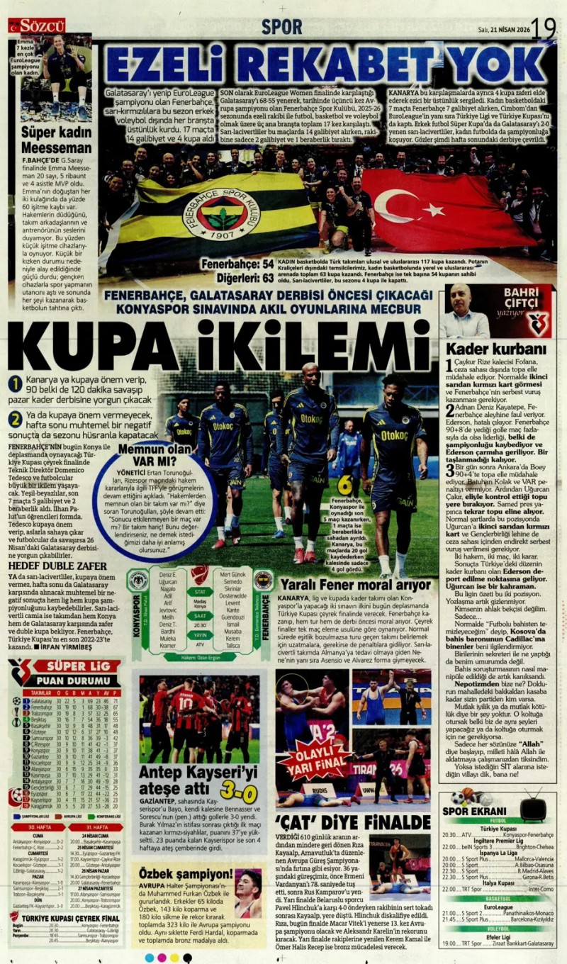 21 Nisan 2026 – Gazetelerde FENERBAHÇE