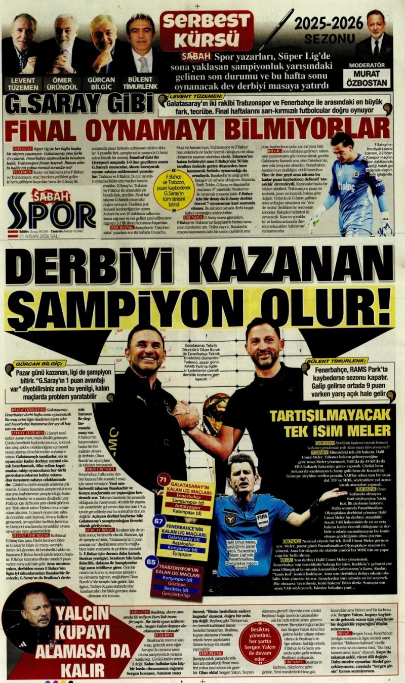 21 Nisan 2026 – Gazetelerde FENERBAHÇE