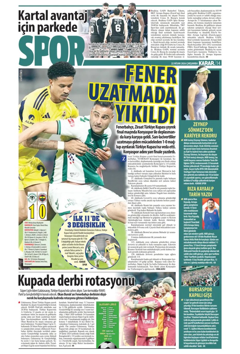 22 Nisan 2026 – Gazetelerde FENERBAHÇE