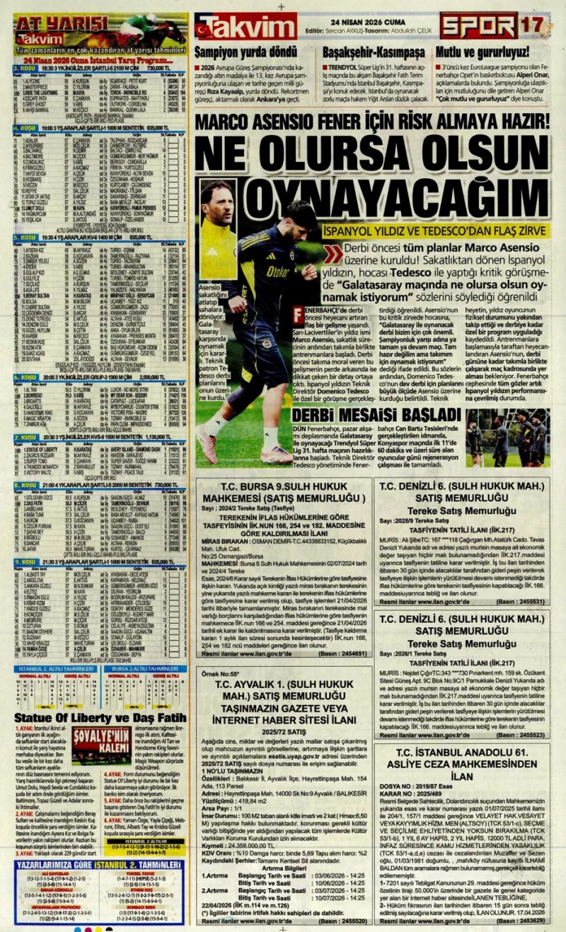 24 Nisan 2026 – Gazetelerde FENERBAHÇE