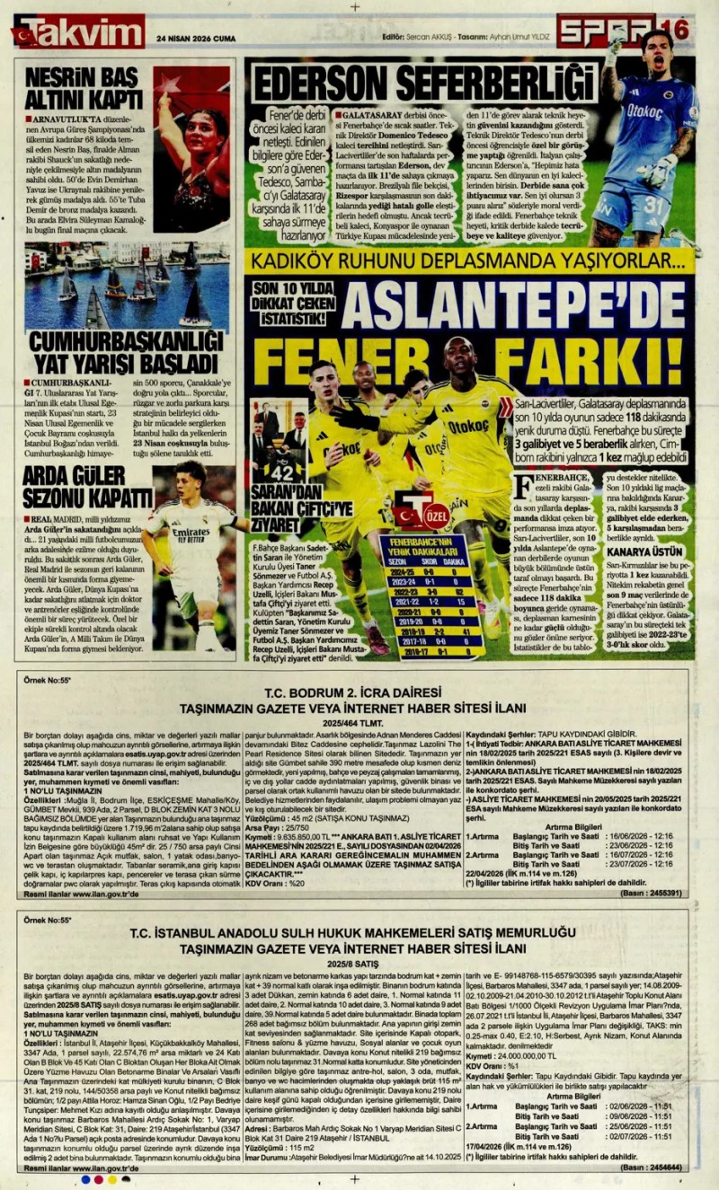 24 Nisan 2026 – Gazetelerde FENERBAHÇE