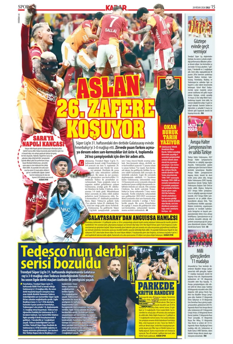 28 Nisan 2026 – Gazetelerde FENERBAHÇE