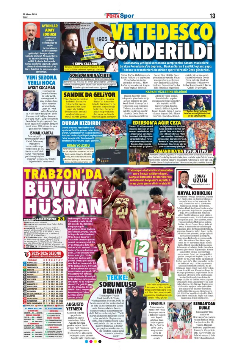 28 Nisan 2026 – Gazetelerde FENERBAHÇE
