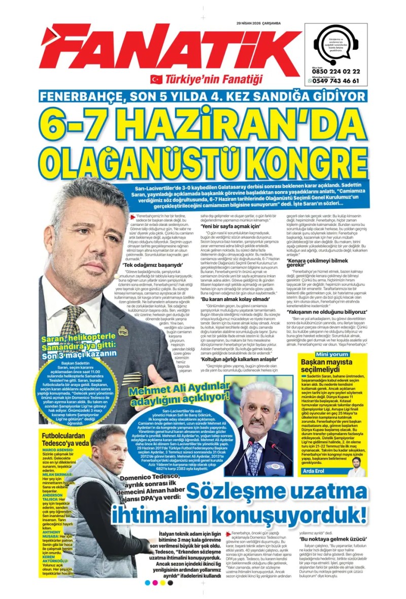 29 Nisan 2026 – Gazetelerde FENERBAHÇE