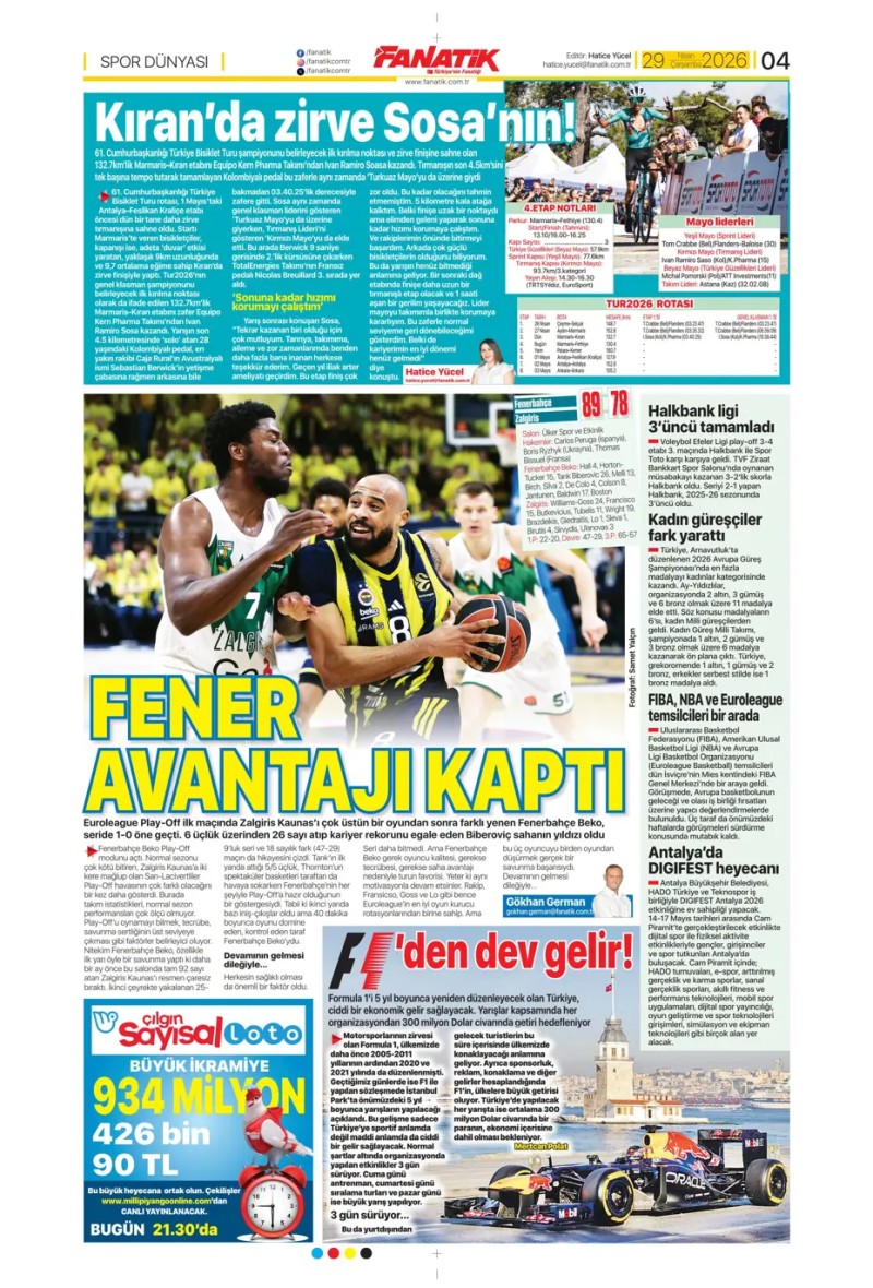 29 Nisan 2026 – Gazetelerde FENERBAHÇE