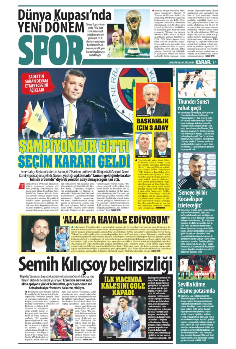 29 Nisan 2026 – Gazetelerde FENERBAHÇE