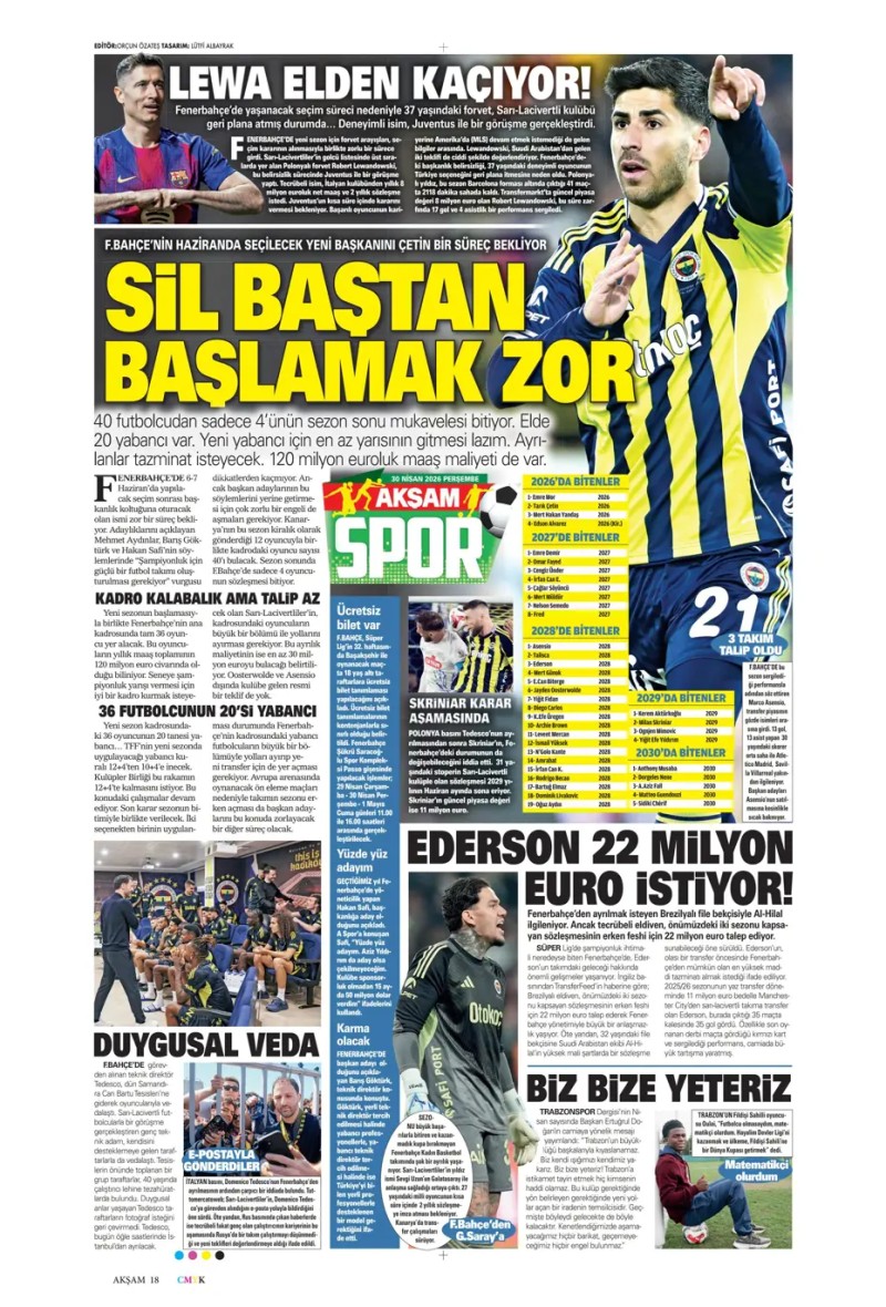 30 Nisan 2026 – Gazetelerde FENERBAHÇE